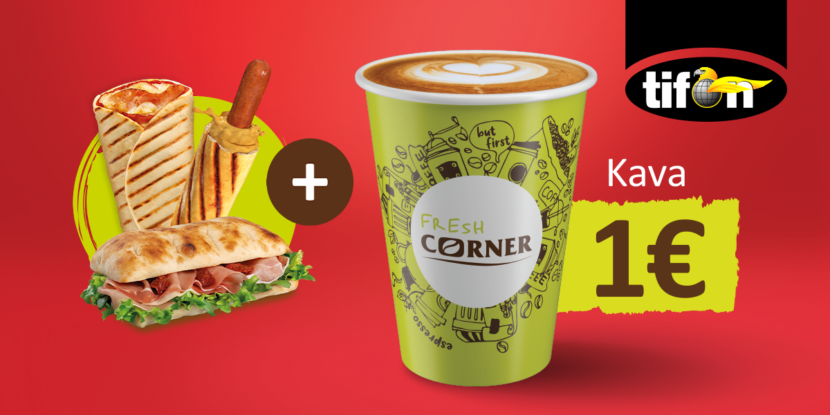 *Na Tifon prodajnim mjestima na autocestama cijena kave uz kupnju Fresh Corner proizvoda iz ponude hrane iznosi 2 € .
